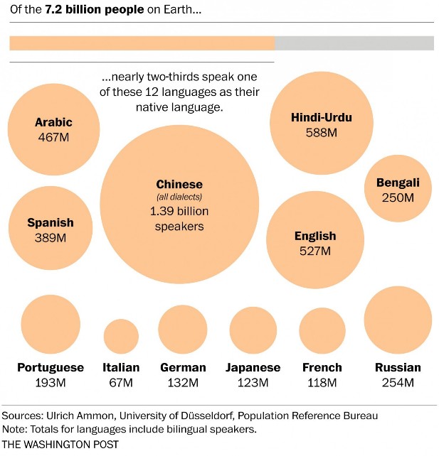 - Die Washington Post hat am 24.09.2015 einen Artikel mit dem Titel "The future of language" (Die Zukunft der Sprache) veröffentlicht.https://www.washingtonpost.com/news/worldviews/wp/2015/09/24/the-future-of-language/